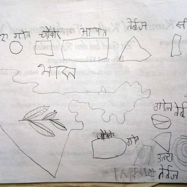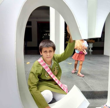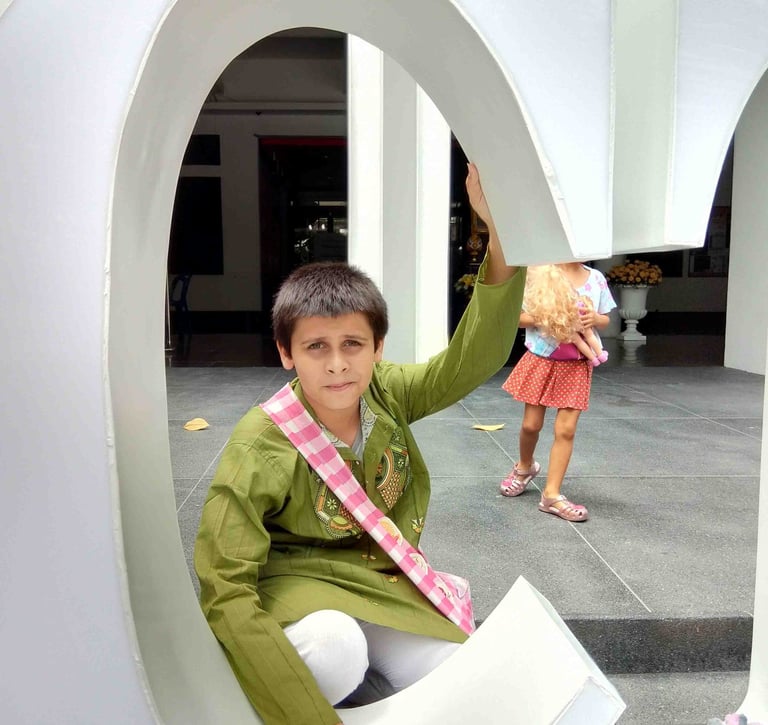 Shri Ram Goswami was born on 9 February 2007 in New Delhi. Since the age of three to the present, he received his education through home schooling guided by his mother. At the same time, he was introduced to the art of Sānjhī ground painting by his father, the hereditary priest and Sānjhī artist Acharya Shri Shashank Goswami. He assisted his father in the preparation of Sānjhī designs in various presentations of Indian art both in India and abroad. As a child artist, he participated in numerous cultural dissemination projects of Vraja Kala Sanskriti Sansthana, presenting dance performances and portraying various epic characters in stage plays. In 2019, he anchored a documentary film featuring various places related to Mahatma Gandhi's life, which was produced by Vraja Kala Sanskriti Sansthana on the occasion of Mahatma Gandhi's 150th birth anniversary. Participating in the cultural dissemination and documentation activities by Vraja Kala Sanskriti Sansthana, Shri Ram has traveled to numerous places within India as well as to countries such as Sri Lanka, Nepal, Thailand, Germany. the Czech Republic, Italy and Austria.