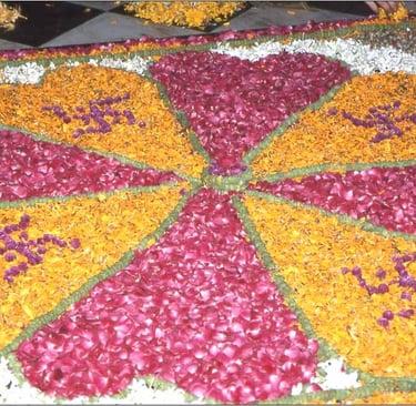 In our online courses and workshops, the diverse techniques of this nowadays endangered art form are taught, such as the preparation of stencils, the sketching of a designs, as well as the making of sanjhi and rangoli designs from various media such as flowers, colors, grains and others.